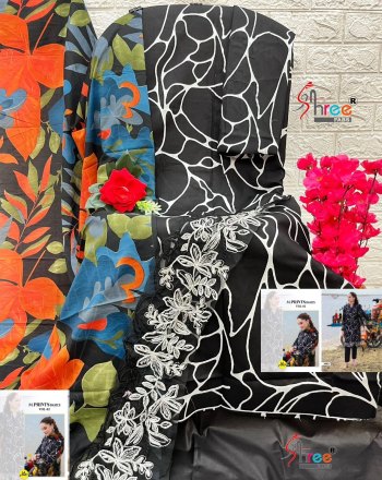 Firdous Bliss 3 Cotton Printed with Embroidery Patch Suit with Chiffon Dupatta ( UnStitched )