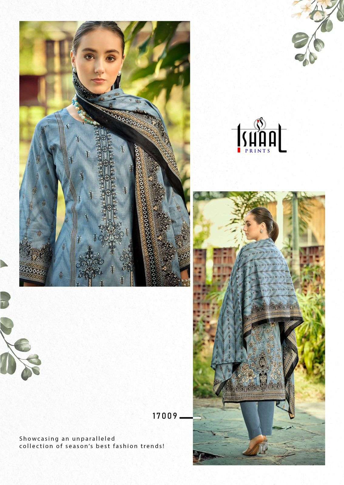 Be the first to review “Ishaal vol 17 Cotton lawn Beautiful Embroidered self work Collection with Heavy Mal Mal Dupatta”