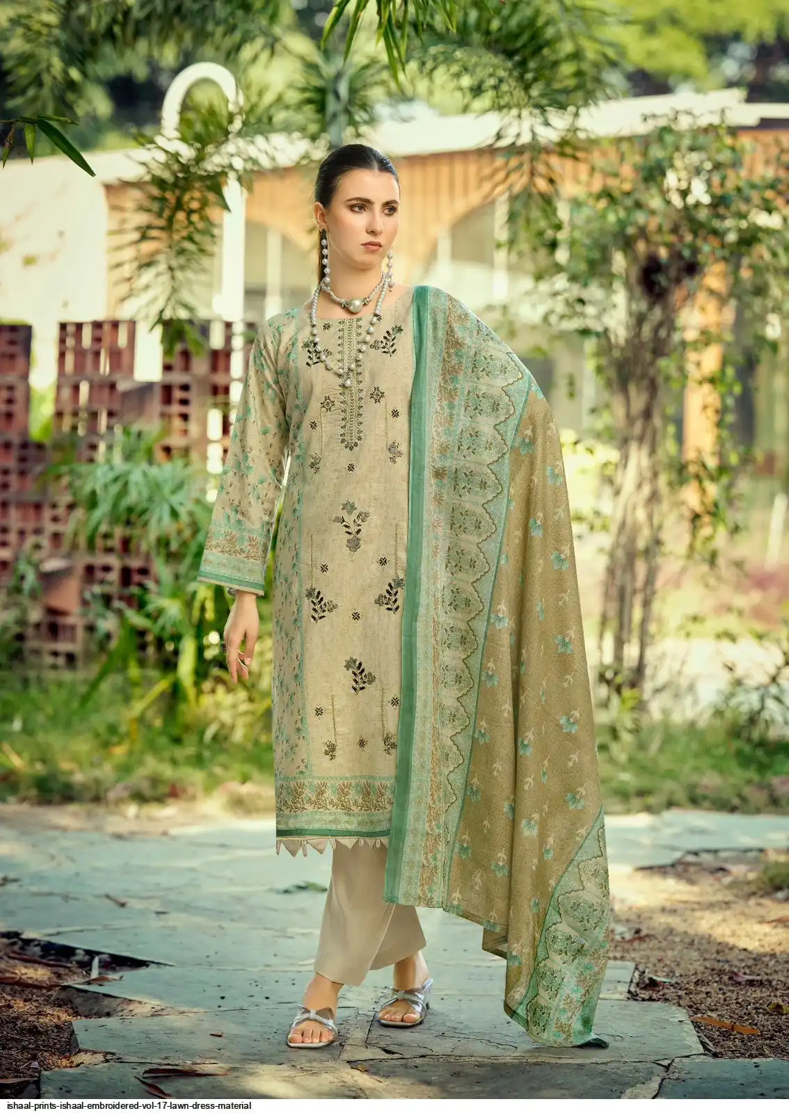 Be the first to review “Ishaal vol 17 Cotton lawn Beautiful Embroidered self work Collection with Heavy Mal Mal Dupatta”